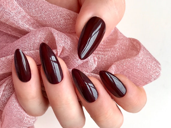 Dark Burgundy Red Press On Nails Custom Press On Nails False Etsy
